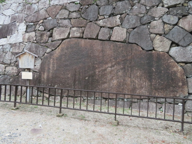 名古屋城で最大の石垣石材です。こちらの本丸搦手桝形の石垣は、黒田長政の担当でしたが、こちらの巨大な石だけは、普請の名手である加藤清正が積み上げたと伝えられているので、この名前が付いたそうです。石垣の中でそこだけ色が変わっているので分かりやすいです。
