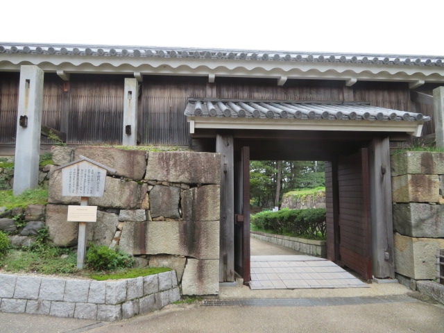 土塀の下に設けられた門です。本丸北側と御深井丸をつなぐ門ですが、厳重に施錠されていて、「あかずの御門」と呼ばれていました。昭和20年に焼失して、現在のものは、昭和53年に復元されたものです。いかにも隠れている門という雰囲気です。