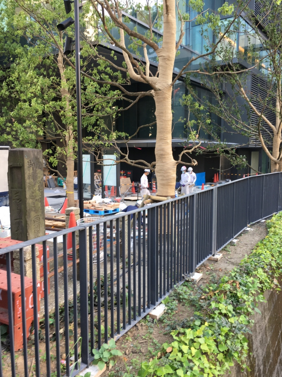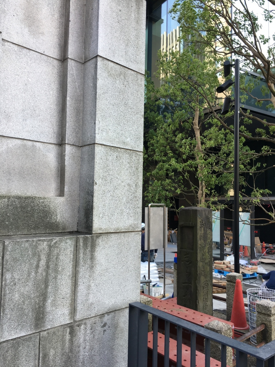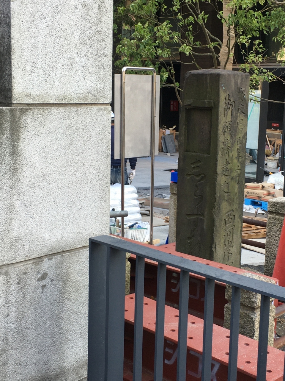 一石橋渡る手前に古い石碑があり、石碑に安政と記載があり、文字がはっきりと見え年季が入っていました。石碑の前、横には説明の看板がありましたが、訪問時は周辺を工事していて少し離れた場所からの見学となりました。