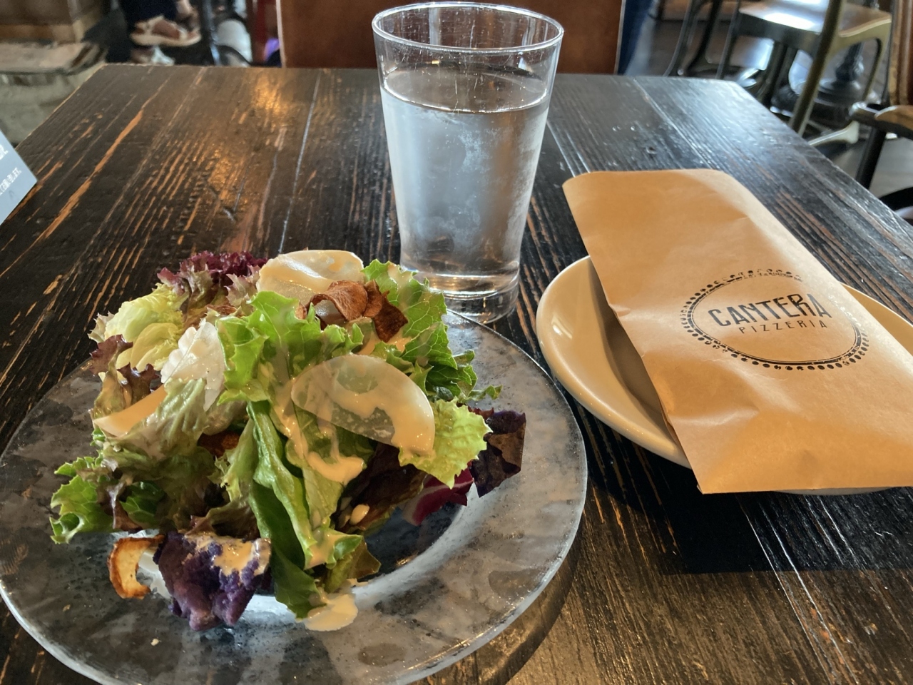 ピッツェリアなんだからここでパスタのチョイスは無いか?と思い、クラシックアメリカーノピザをセットでいただきました。