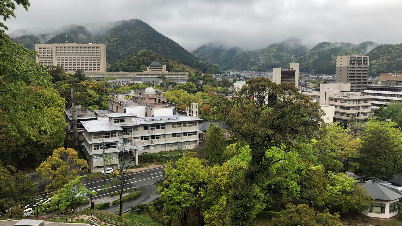 亀山は、山口市中心部にある小高い山です。明治33年、公園として整備されました。山口ザビエル記念聖堂や山頂広場などがあります。山頂広場からは思ったより広く、また、山に囲まれた山口市街地の様子を眺めることができます。