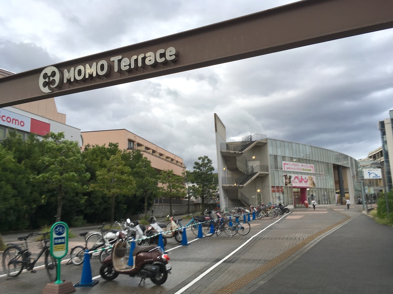 旧街道と山科川の間に新街道があり、街道沿いにはMOMOテラスという商業施設があります。