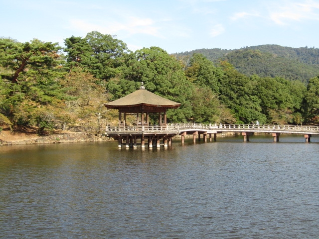 県立奈良公園にある鷺池の中央にある六角形のお堂で、鷺池に浮かぶような姿が美しく、観光スポットとなっています。