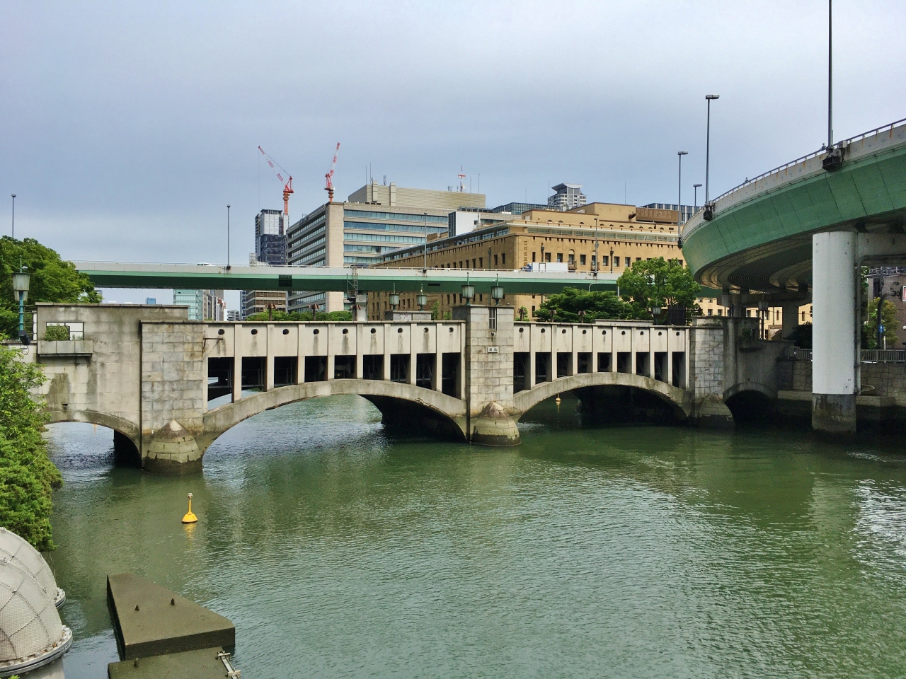 土佐堀川に架かる橋です。肥後橋と淀屋橋の中間、中之島フェスティバルタワーの近くにあり、歩行者専用道路となっています。元は1931年に土佐堀川に架けられた可動堰で、1985年に行われた整備の際に「錦橋」と改名されました。アーチ型の橋の上には、江戸時代後期から明治時代初期の橋を描いた錦絵のタイル焼きが飾られています。