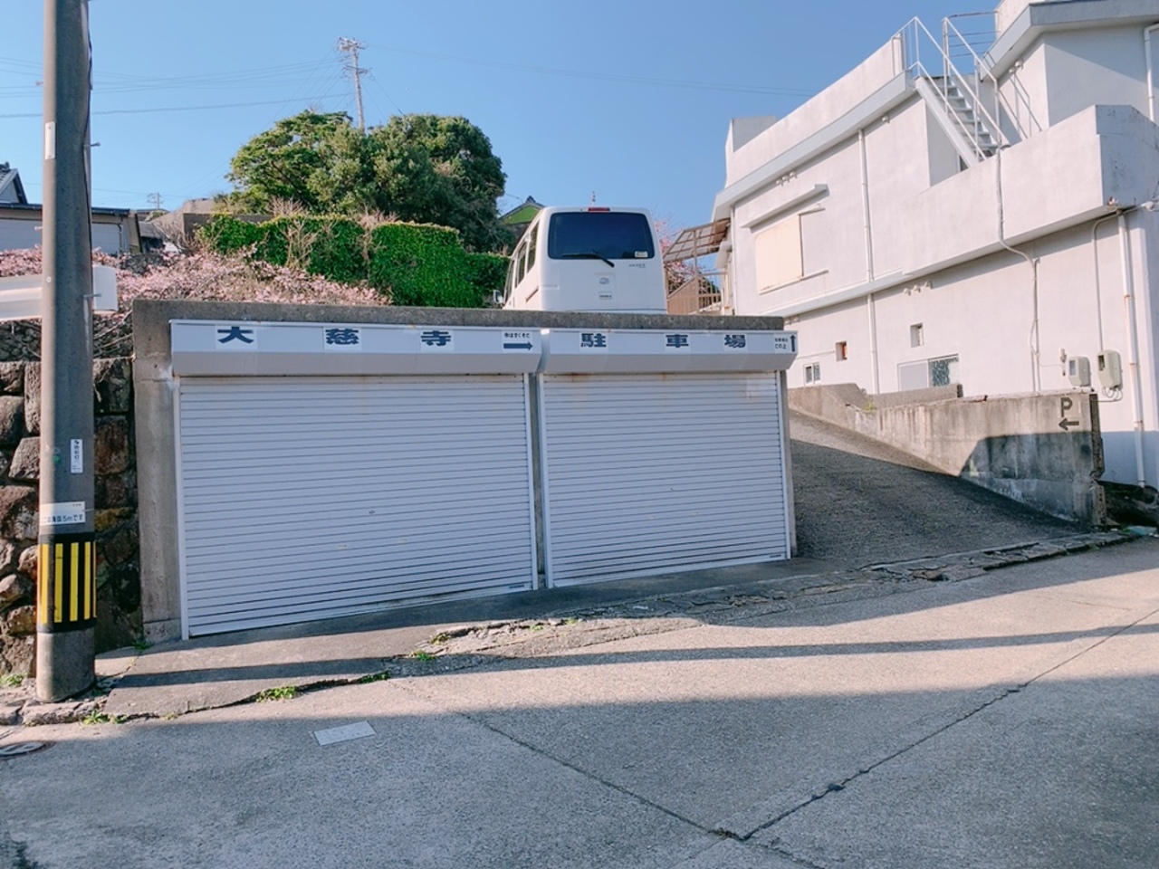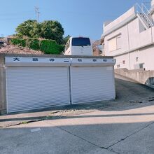 駐車場は、かなり狭い道を入って行った、またその奥にあるので、ちょっと分かりにくいかも。 駐車場だか、物置の上の部分に、大慈寺駐車場と書かれたサインがありますので、見逃さないで!