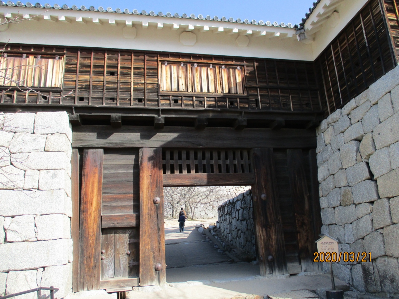 松山城には、たくさんの門がありますが、この筒井門はロープウェイをおり、歩きだして2つ目の門になります。松山城内では、最大の規模で重要な守りの門になるようです。見た目にもどっしりとした印象です。この辺りからは、見晴らしも良いです。