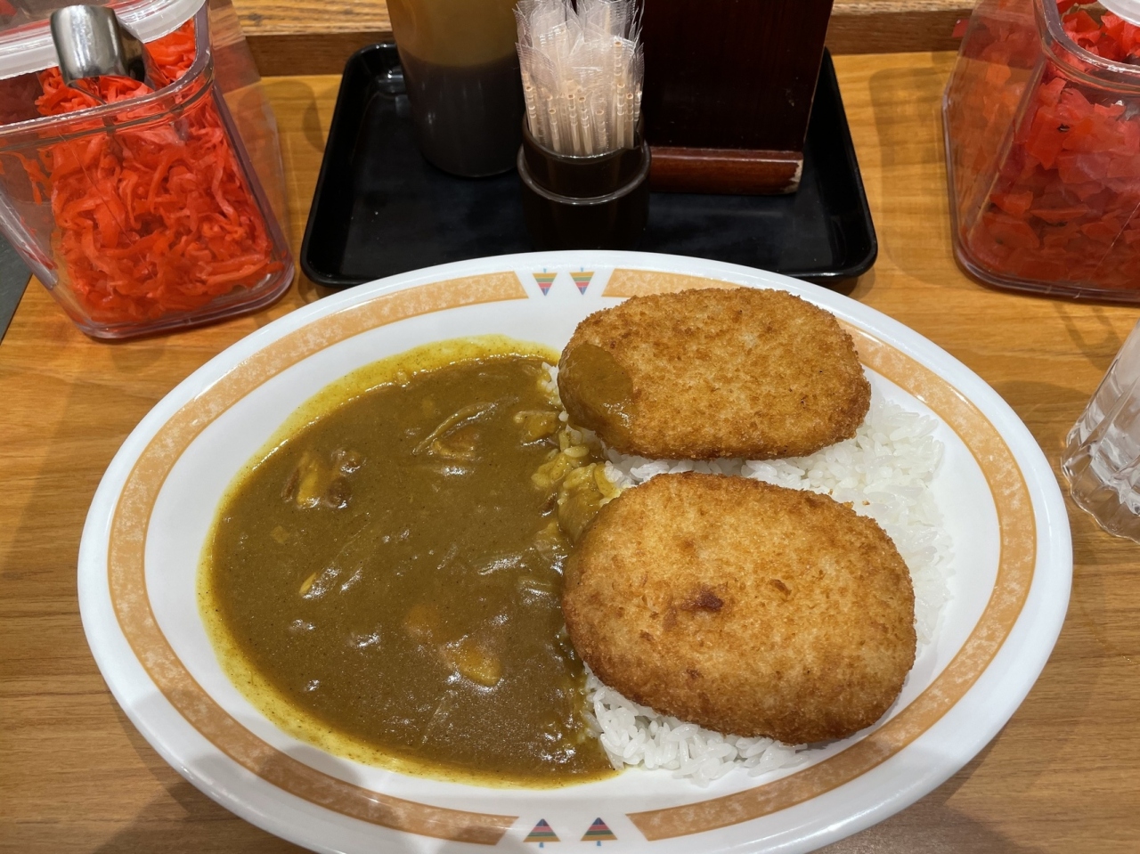 ここが新宿本店かと思うような小さな店ですが回転はすごい。並んでいても店員さんがテキパキとさばいてどんどん回転していきます。まずは注文、お金を払い立ち食いですが案内されすぐにカレーが提供されます。流れるようなスピード。時間ない方は最高