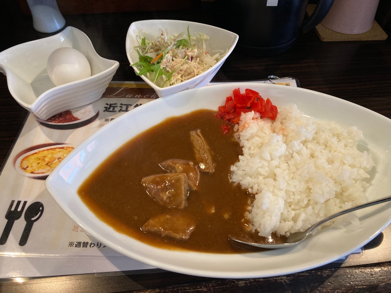 浅草の国際通りからかっぱ橋方面に向かう路地にある小さなお店。ランチやってましたので行ってみました。近江牛をつかったビーフカレーが主力らしい。ブランド牛を使って、かつ珈琲もついて900円未満なので結構お得感があります。