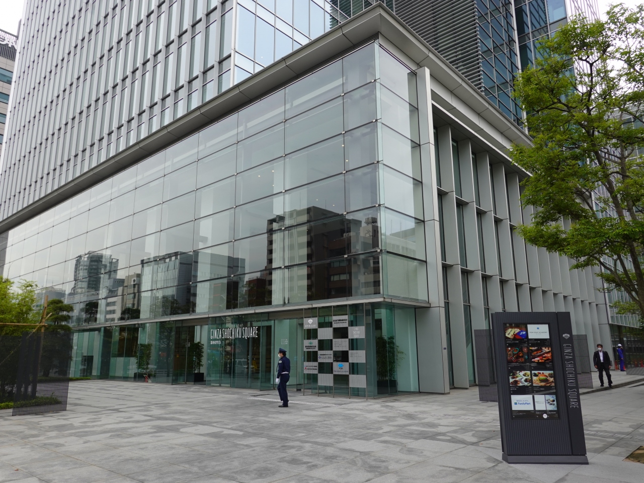 「銀座松竹スクエア」は、晴海通り沿いに建つ地上23階建てのスタイリッシュなオフィスビルです。なかなか恰好が良いビルだと思って調べたところ、設計は隈研吾氏と知り納得でした。オフィスが主体で、飲食店などはあまり入居していないのが残念です。