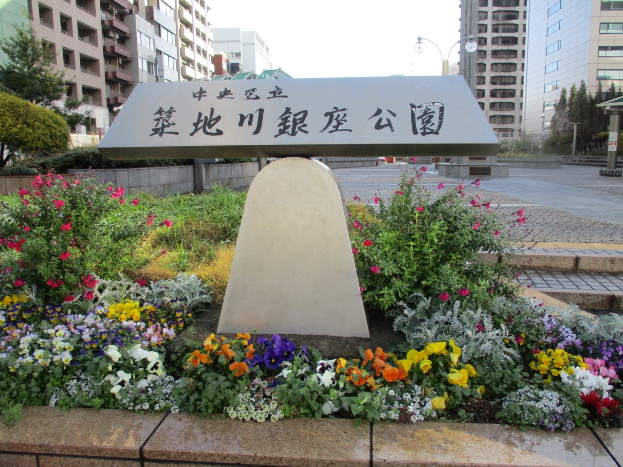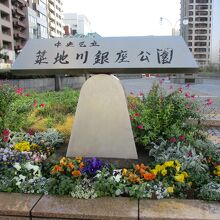 晴海通りにある万年橋の隣、首都高速の上にかぶさるかんじである整備された公園です。