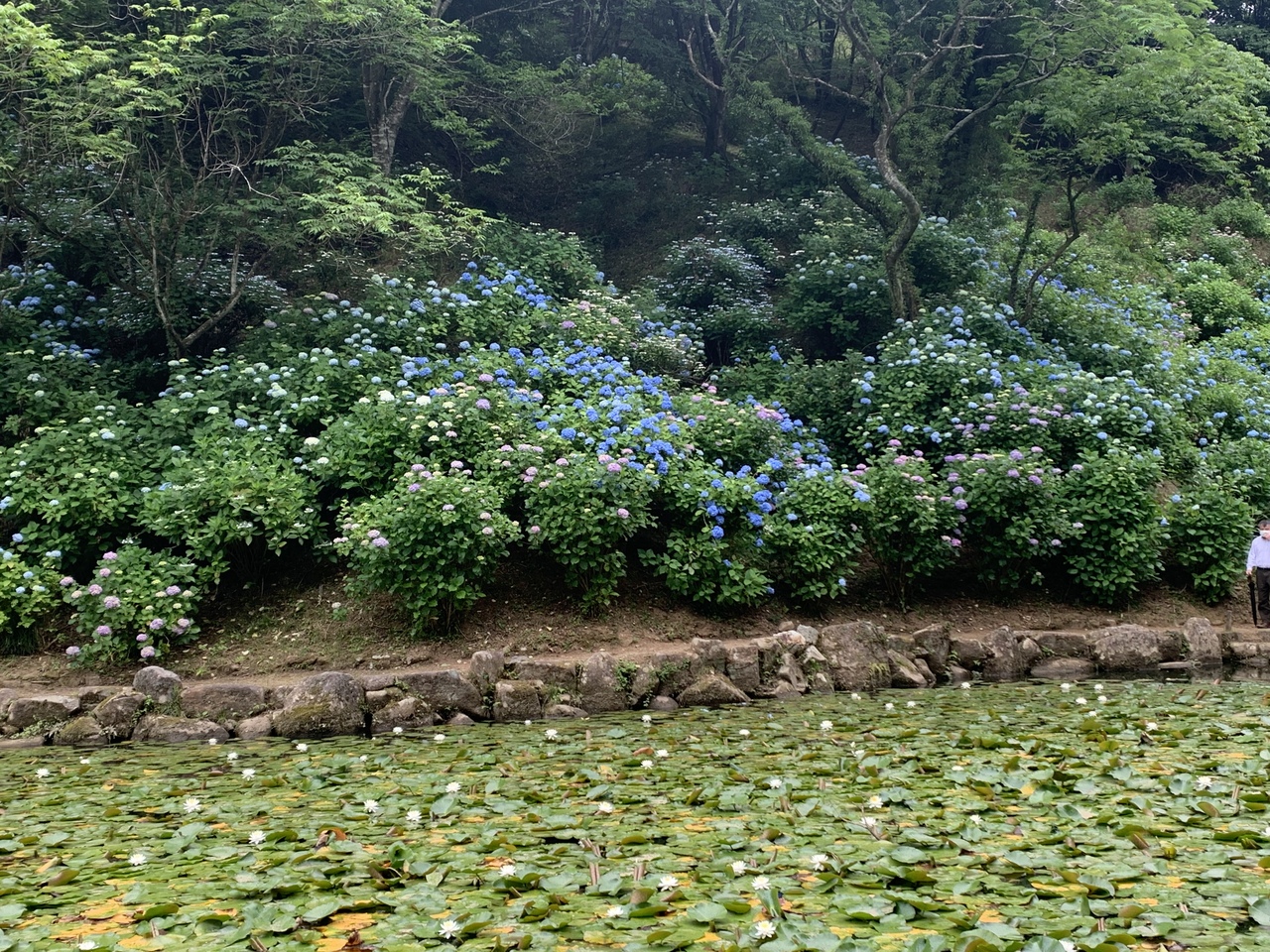 紫陽花が池の周りにたくさん咲いていて綺麗でした。本格的なカメラを持った人がたくさん来ていました。
