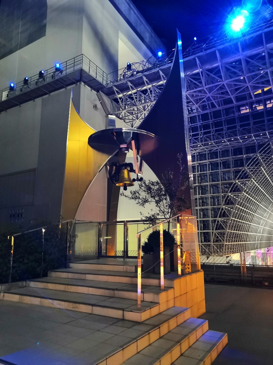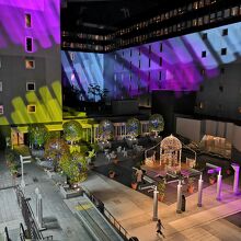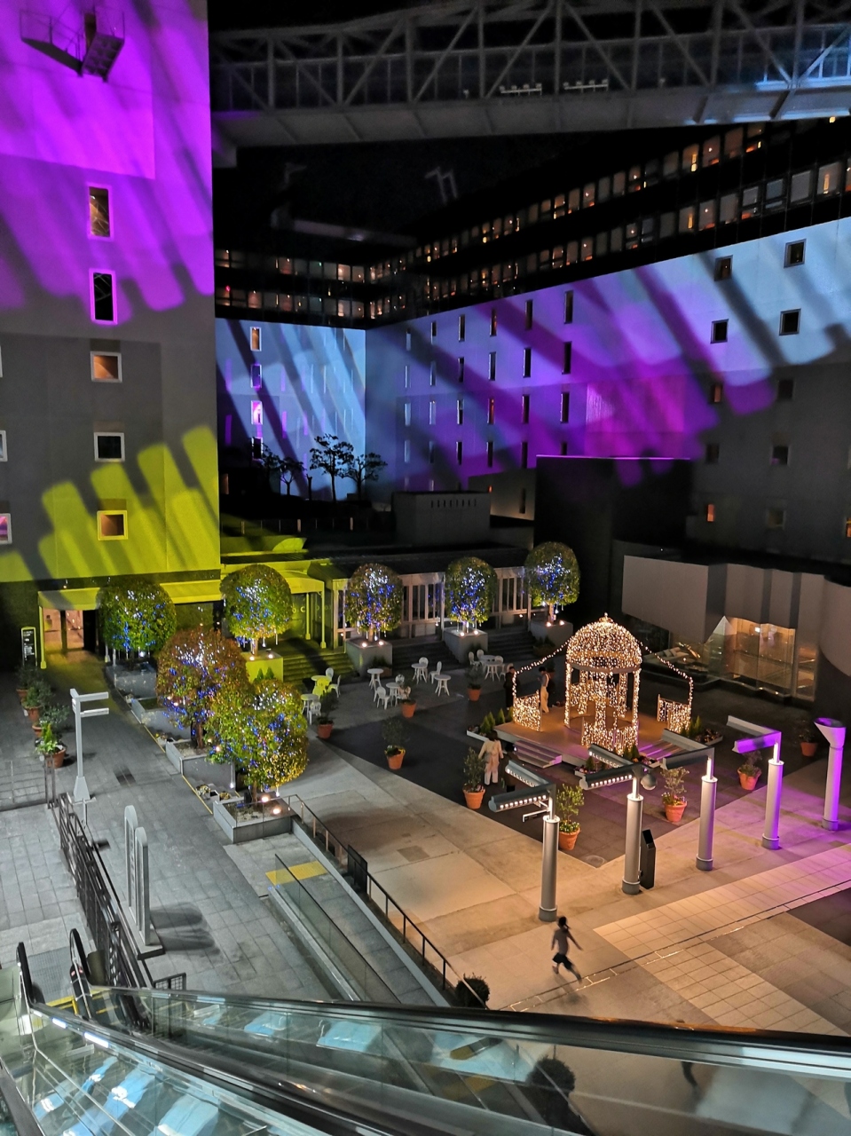 大階段とは反対側のエリアです。拉麺小路から空中経路を歩いていくとこちらのエリアに出ます。中庭のようになっていて、チャペルなどもあって、結婚式なども行われるようですね。綺麗にライトアップされているので、夜がお勧めです。