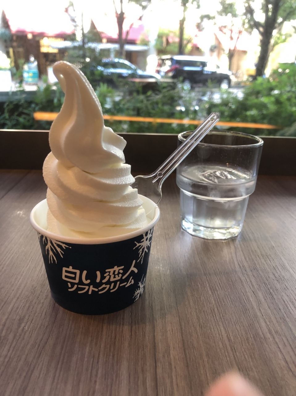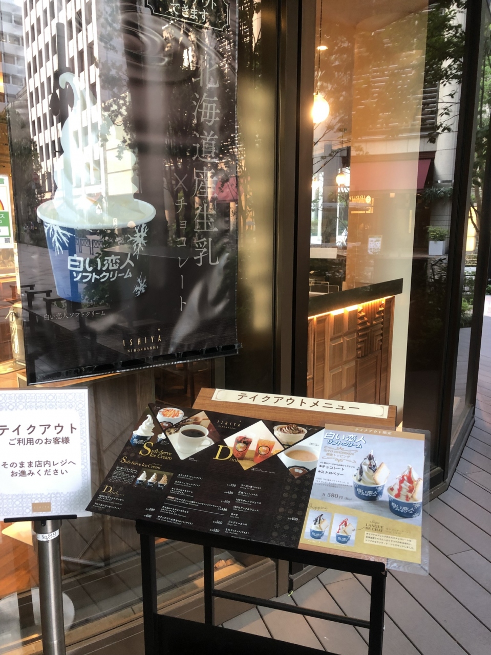 白い恋人で有名な石屋製菓のカフェがコレド室町テラスにあります。本当はパンケーキ目当てで行ったのですが夕方だと売り切れです。仕方ないのでソフトクリームをいただきました。北海道のイシヤカフェや空港で食べられるものと同じでとても美味しかったです。