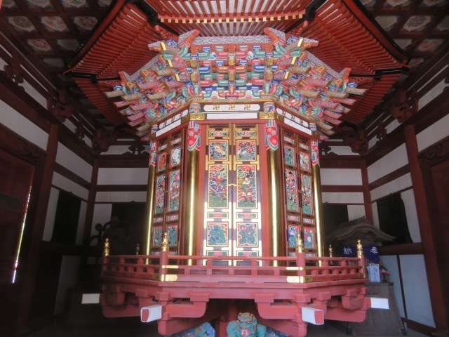 成田山新勝寺境内大本堂の南東、三重塔そばにあるお堂です、享和7年(1722年)に第一世照範上人によって建立され1809年に再建されています、堂内に大きな彩色鮮やかな輪蔵があり、外から見ることができます、上部に松平定信の筆による扁額があります、行った時には一切経堂諸尊供養会のお知らせがされていました。