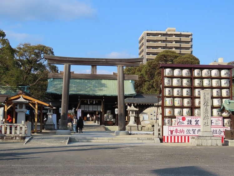 最初は東側からアクセスして立派な鳥居を見つけたので、ここか、と思ったのですがそれは隣接する松原神社でした。松原神社も立派でしたが、南側に回ってみると、佐嘉神社はさらに規模が大きくてちょっとびっくり。鍋島藩主の直正公・直大公を祀っている、ということで創建は昭和になってからですが、いまや佐賀市を代表する神社になってます。