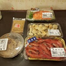 鮮魚だけでなく、お土産、菓子類、加工品、お惣菜等がありました。