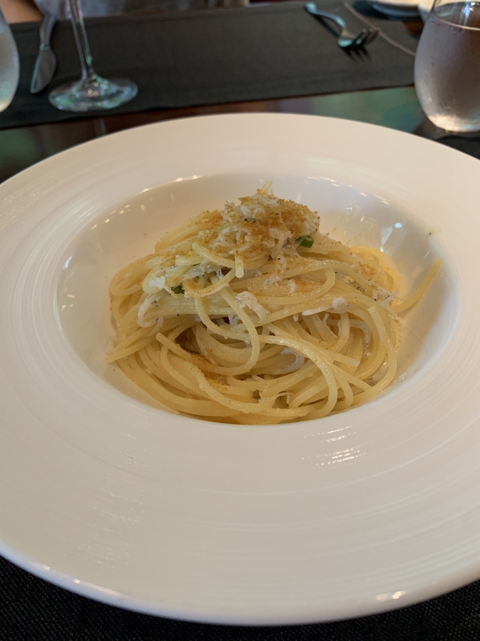 ランチで伺いました。3皿のチョイスで前菜・パスタ・メイン・デザートから選べます。メニューの種類も多く、どれも魅力的でした。味はもちろんですが、見た目も素敵でした。ちょっと贅沢したい時のランチにはピッタリです。スタッフの方のサービスもよく、また伺いたいです。