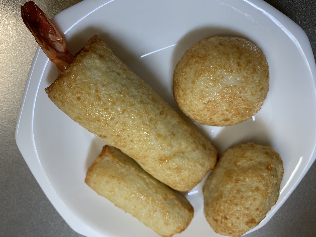 いつもはホタホタ揚げを買うのですが、今回エビ1本はいっているのと、