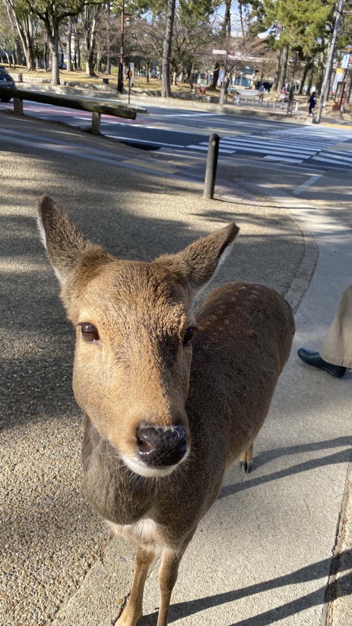 奈良市の一番のポイントがここ奈良公園。奈良といえば鹿!ですが、鹿せんべいはどこでもあるよ?なんて言う話もありますが、探すとないのが鹿せんべい。昼間しか買えないので、見つけ次第買うほうがいいです。ただ、鹿もさるもので、お店や鹿せんべいベンダーから買う瞬間を待ち構える鹿が多数。この鹿にちょっとあげてささっと移動してひとりでいる群から離れた子にたくさんあげるようにしています。そう、この写真の子は翌日も覚えていてくれました。