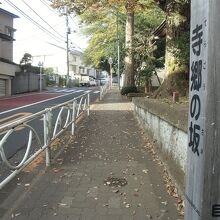 平町二丁目と大岡山一丁目の間を西へ下る鉄飛坂に続く道で、中根小学校前を旧名主岡田邸のほうへ上る緩い坂です。