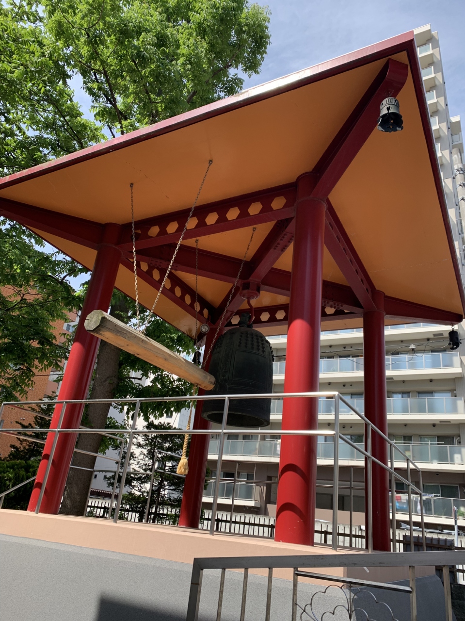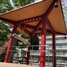 境内には赤い柱の鐘楼があって、かなり目立ちます。