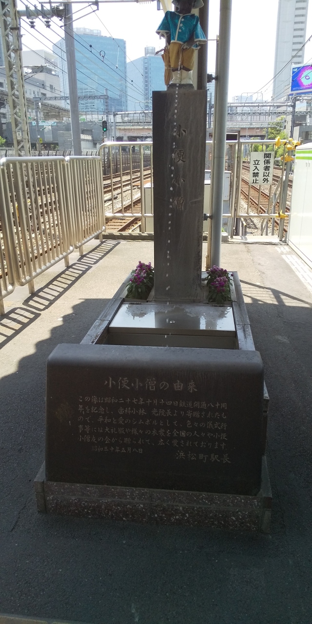 京浜東北線、山手線の品川方面行きホームの品川寄りの端にある小便小僧は実に60年以上もホームの端で放尿を続けているからすごい、しかしこんなところに小便小僧がいるとは気がつきませんでした。水道代はJRが払い続けているのでしょうか?余計な事を考えさせられます