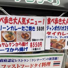 「グリーンカレーたこ焼き」 などは、食べ歩き 大人気メニューだそうです。