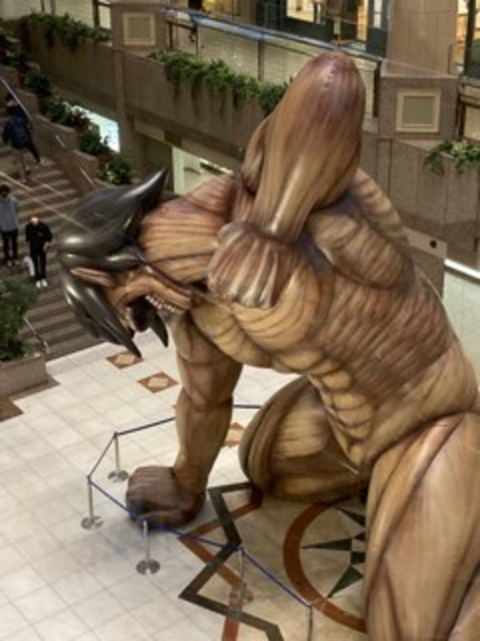 5月に訪問した際に進撃の巨人とコラボをしていたようで、巨人像が所狭しと並べてありました。かなり迫力がある像なので、最初見た時はかなり驚きます。記念撮影している人も多いです。