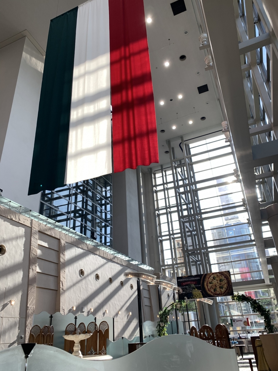 高い天井と明るくて大きな窓が特長の会場で食べる朝食は、