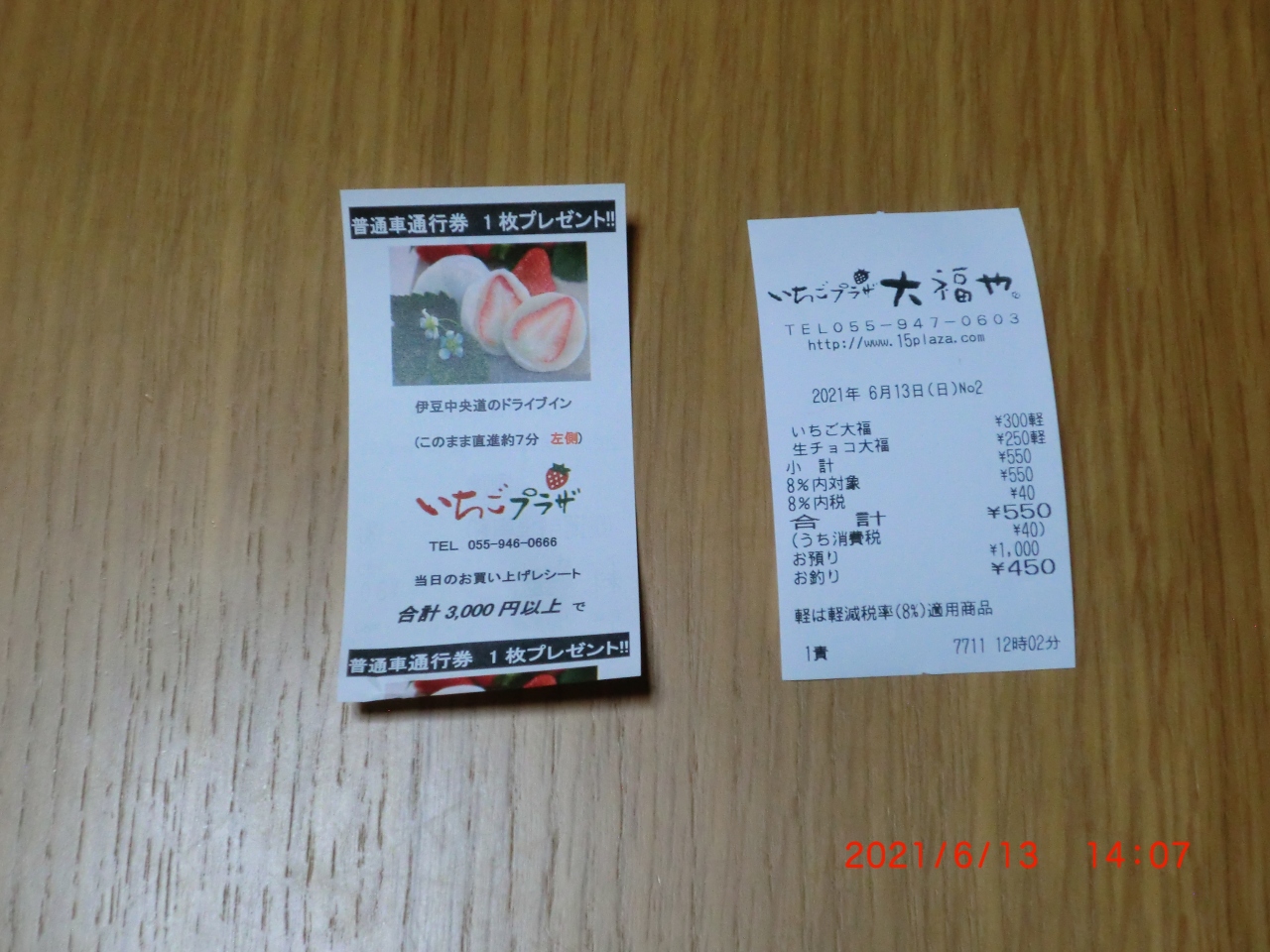 「いちご大福」は好きで見つけた時は買って食べます。ここは「大福や」さんの店があり寄って「いちご大福」=300円、「生チョコ大福」=250円を買いました。