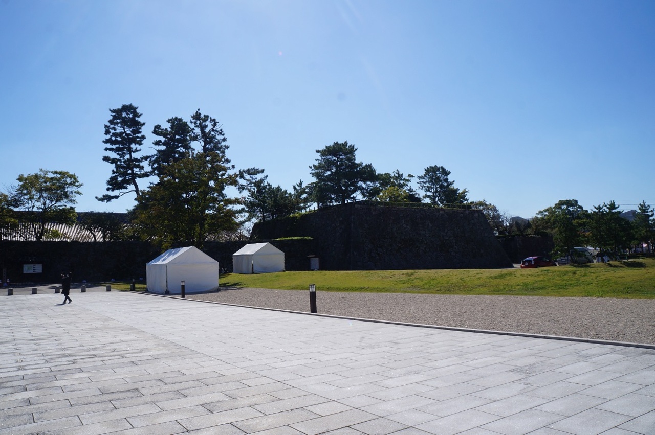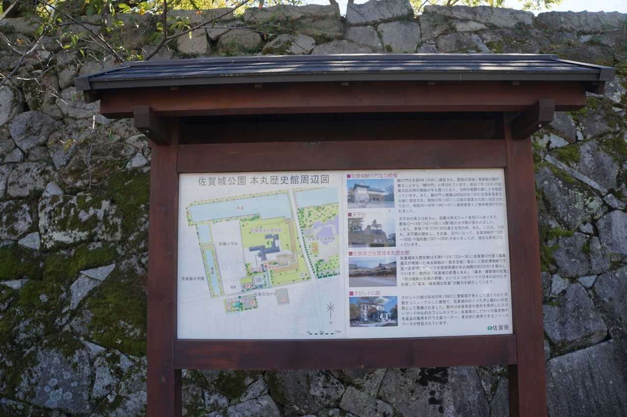 佐賀城公園は、佐賀城跡の内堀内にある大きな公園です。お城の天守閣はありませんが、立派な石垣や櫓門をくぐると、敷地内には、本丸御殿の資料館はじめ、美術館や博物館があり、芸術エリアになっています。ドライブの合間の公園散策でリラックスできました。すぐ横にはNHK放送局があり、放送塔と鍋島氏の銅像がコラボしていました。