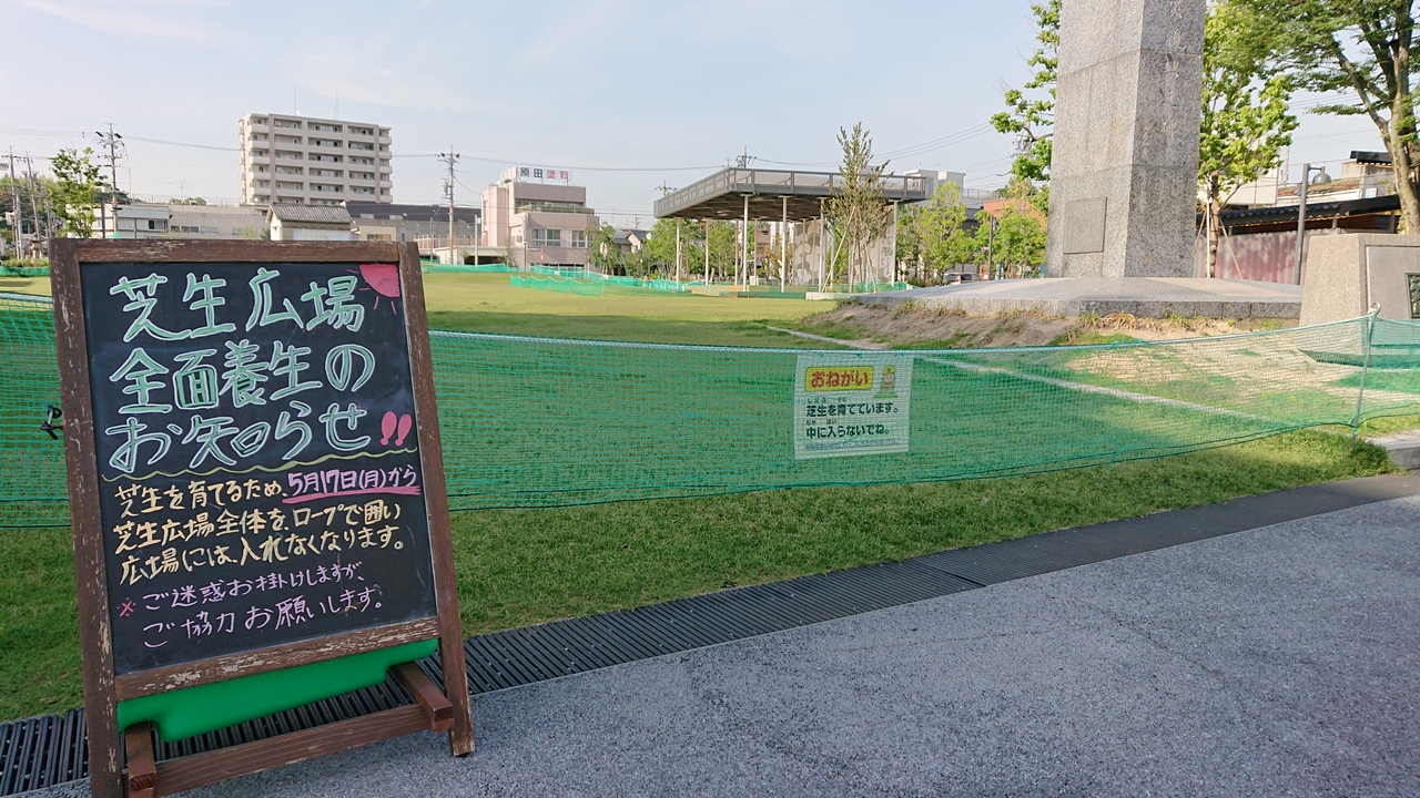 6月上旬に訪問しました。公園自体は解放されており、利用者もそれなりにいらっしゃいました。しかしながら、芝生広場については、養生中で、囲いがなされ、残念ながら立ち入ることはできませんでした。無事芝生が良い状況になるのを楽しみに待ちたいな、と思いました。