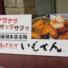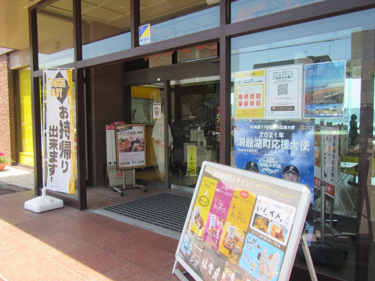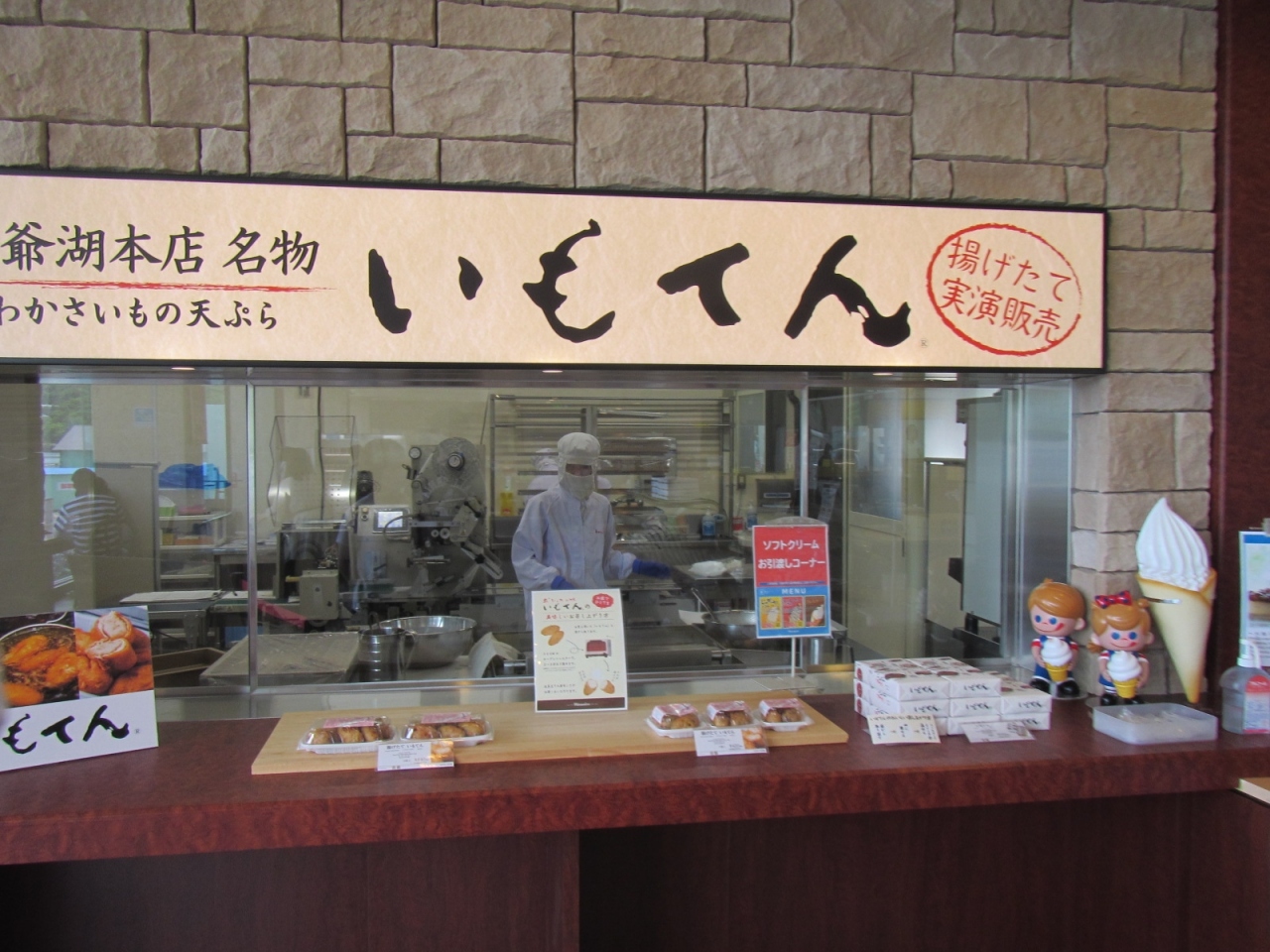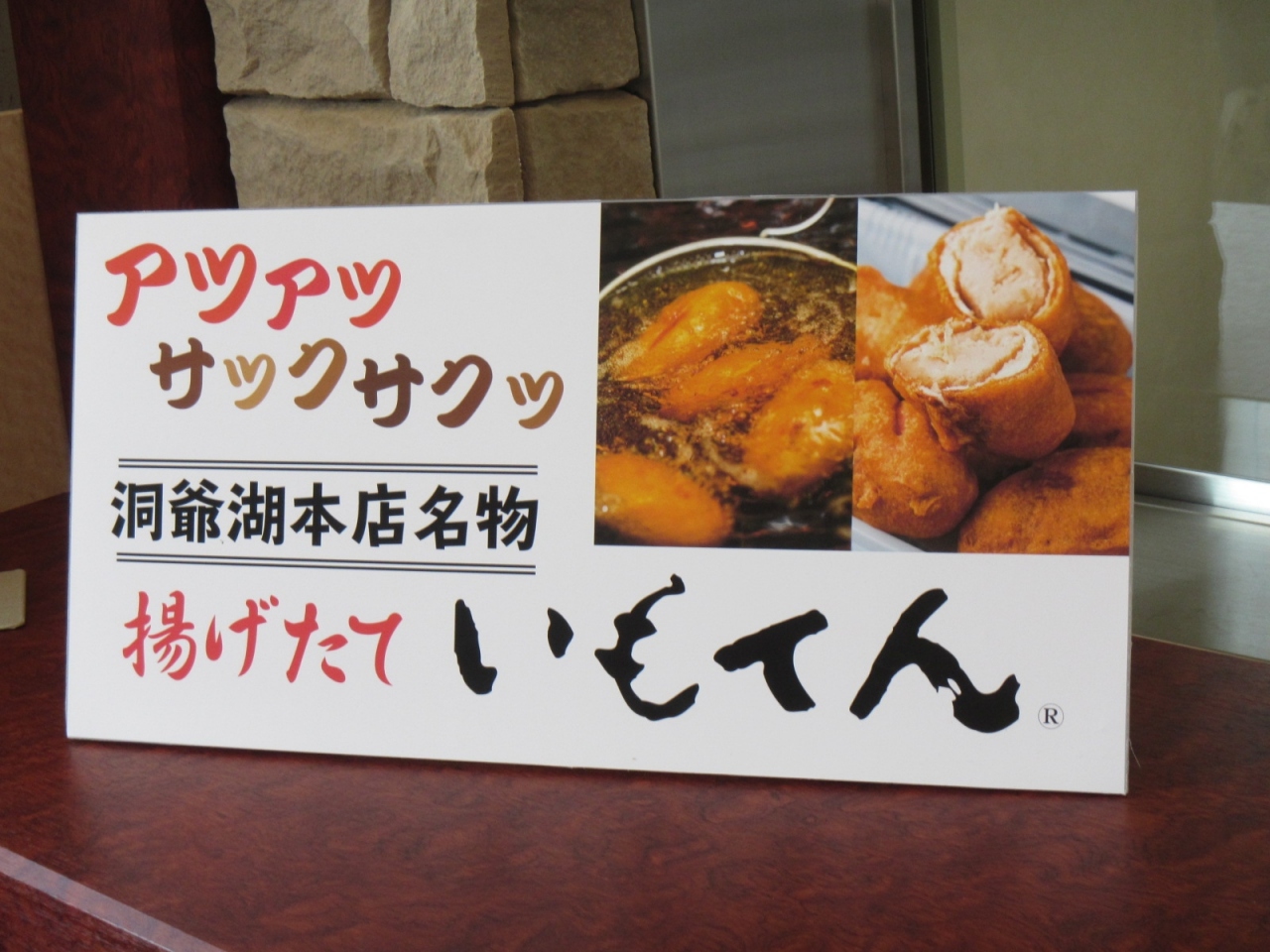 洞爺湖温泉街のやや西側に位置し、わかさいものお菓子やケーキを販売していますが、本店では”いもてん”の販売窓口があって、名物になっているようです。