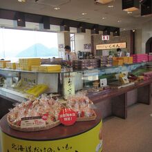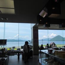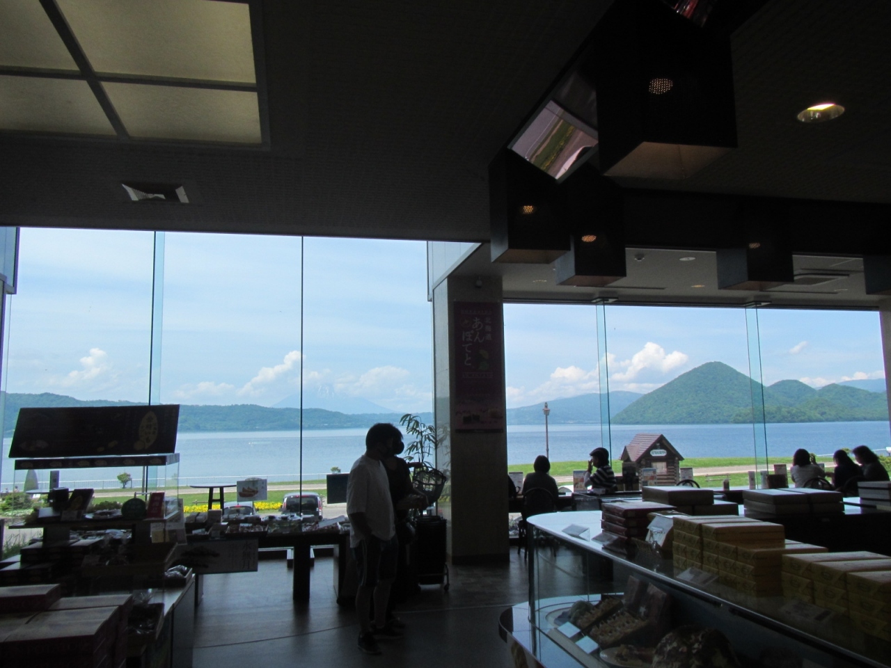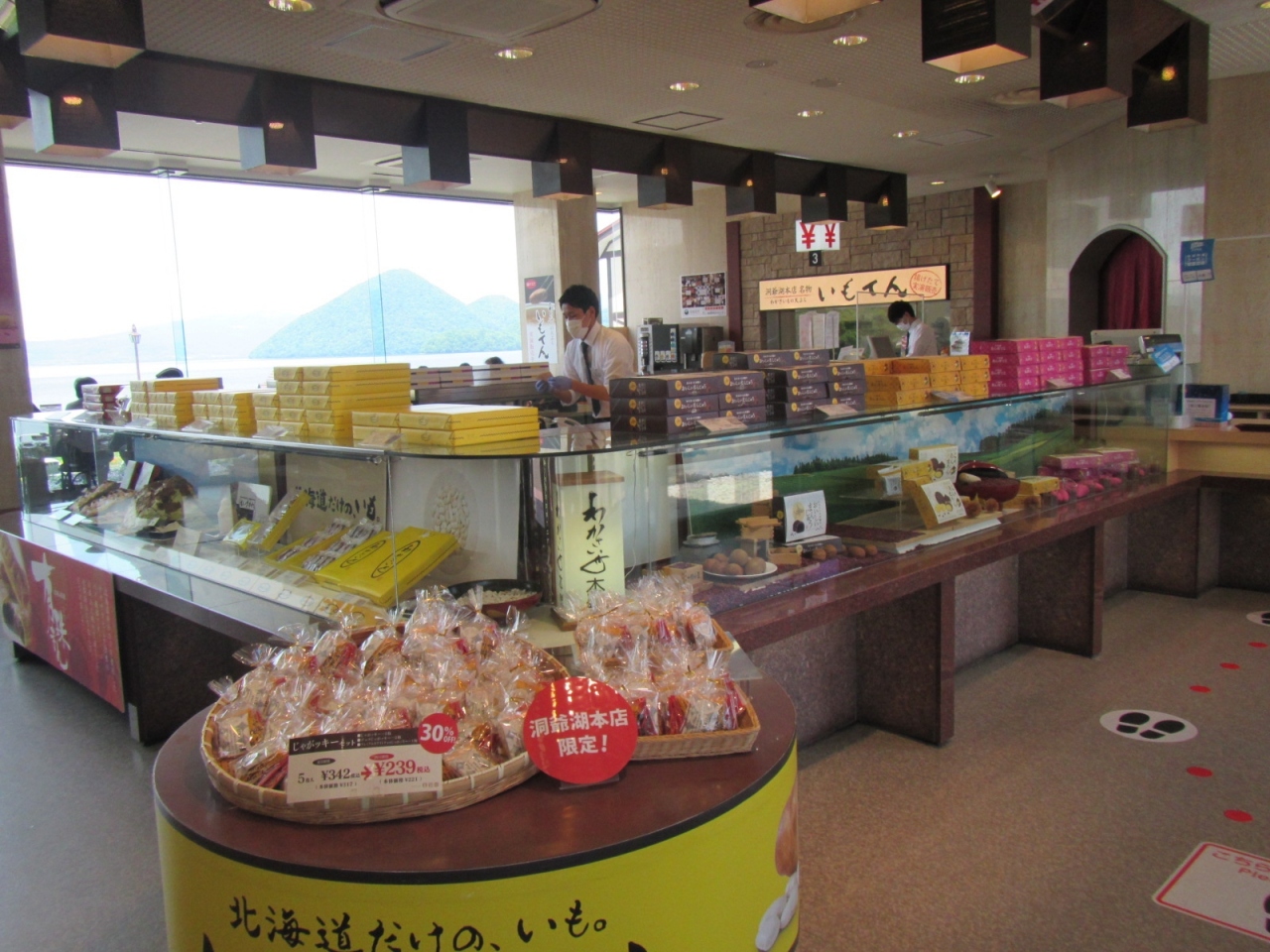 いもてんの窓口販売と洞爺湖を眺める2階食堂
