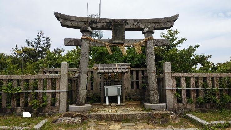山頂を表す標識は見つけられなかったが、歴史を感じさせる鳥居と主に奥宮はしっかりと鎮座していた。
