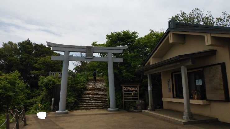 標高634メートルの弥彦山山頂に祀られている。道中はアップダウンがあるほか、やや長い階段の上りがあった。