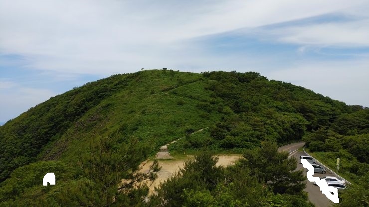 道もよく整備されそれほど急斜面もないので安全に登山ができた。山頂は気象レーダーの建物があるのが特徴。さほど眺望は無いが、登山道途中に日本海が望める場所があった。