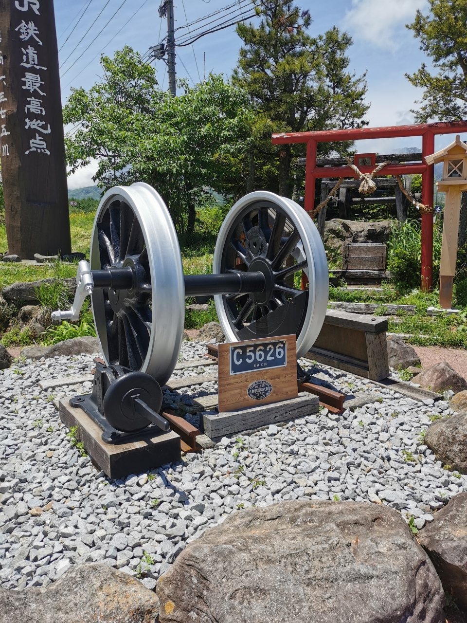山梨・長野ドライブ。蓼科高原から国道299号線(メルヘン街道)を通って八ヶ岳をぐるっと一周。野辺山高原はJR鉄道最高地点や滝沢牧場、国立天文台野辺山宇宙電波観測所など見て回るところがたっぷりです。鉄分が少ないですがJR鉄道最高地点に立ち寄りました。標高1375mとの事です。鉄道神社は小ぶりでした。鉄道の車輪もあります。線路跨いで無料の駐車場と綺麗なトイレがありました。