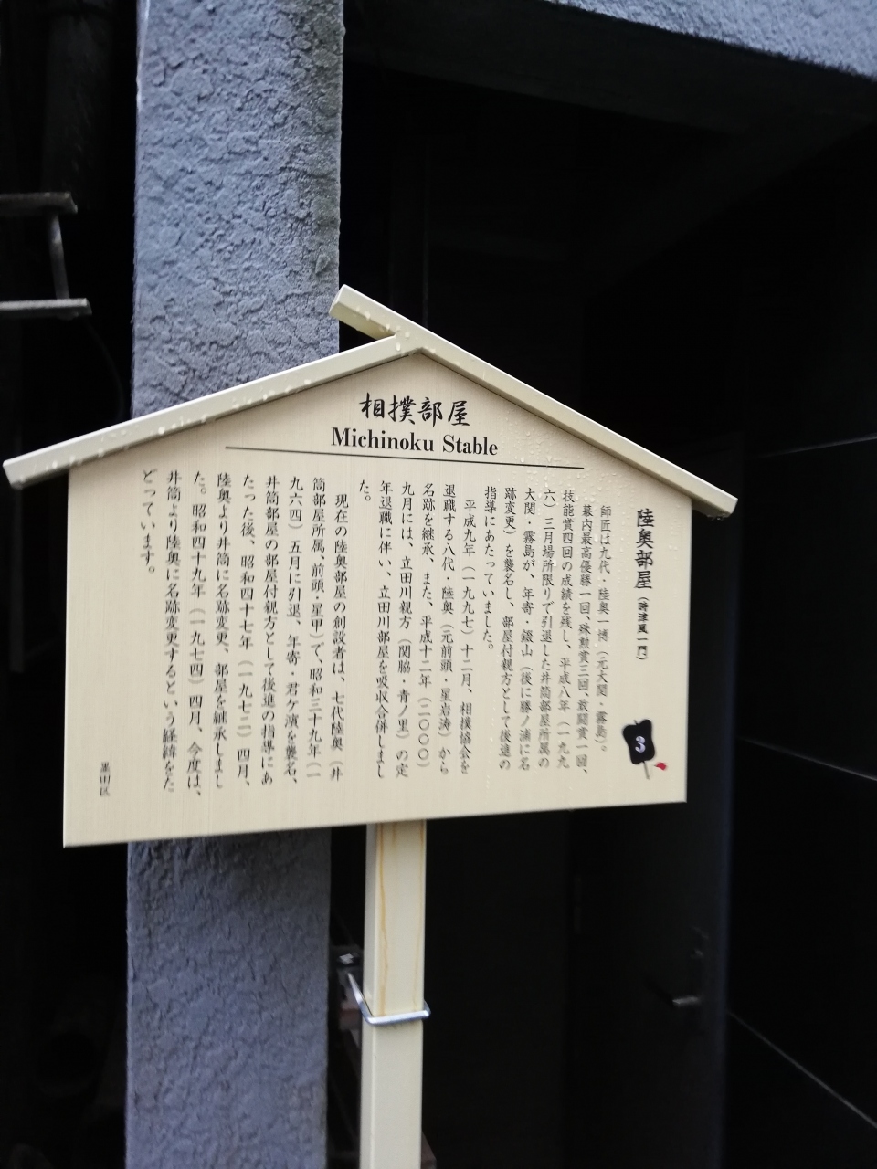 両国と言えば相撲の街ですが、陸奥部屋はその両国のど真ん中にあります。今はいろいろな場所に相撲部屋が点在して中には茨城県に存在する部屋もある中で、陸奥部屋は国技館から歩いてすぐにあります。職住隣接しているのは観光地にとっても魅力的な要素だと思います。