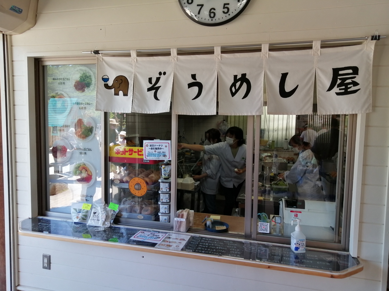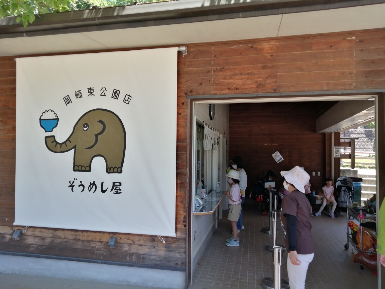 愛知県西尾市に本店がある「ぞうめし屋」の岡崎東公園内にあるテイクアウト専門の売店です。岡崎東公園内の動物園には象がいるので、おそらくそこを狙ったんだと思います。