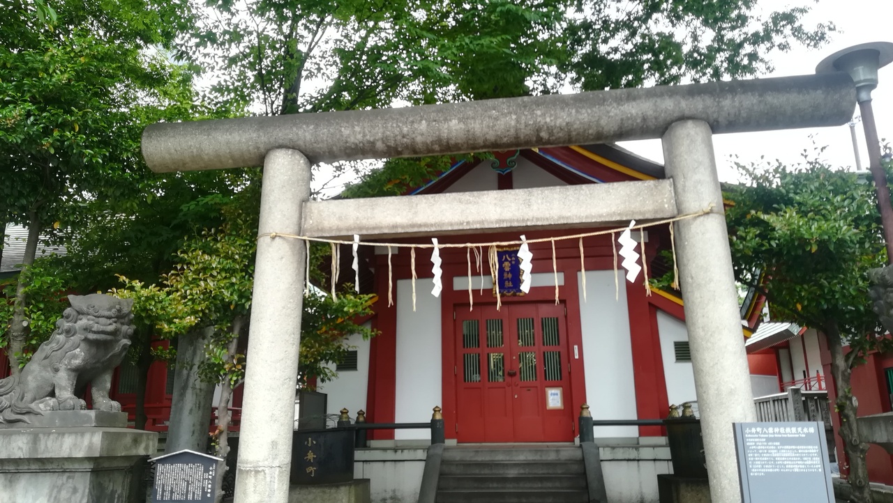 神田明神境内に小舟町八雲神社が祀られていました。本殿左手に三天王の二宮の小舟町八雲神社で、右手には天水桶のあります