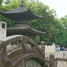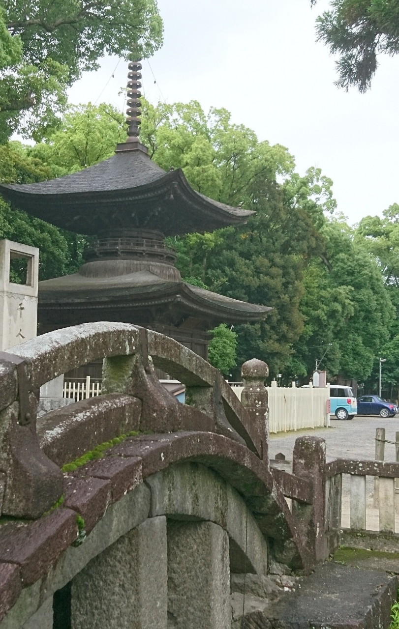 知立神社の駐車場脇にある多宝塔。明治時代以前なら当たり前の風景かもしれないが、今は神社にお寺の建築物である多宝塔があるのは珍しいです。なので、国の重要文化財にもなっています。