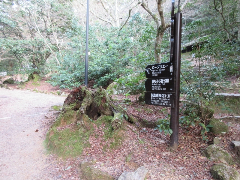 弥山にはロープウェイを利用して登りました。下りはロープウェイを降りてから紅葉谷公園の中を通って歩きました。途中で紅葉谷コースと一緒になりました。でも紅葉谷コースでの登山は通行不可になっていました。木々の中を歩くのは気分が良かったです。