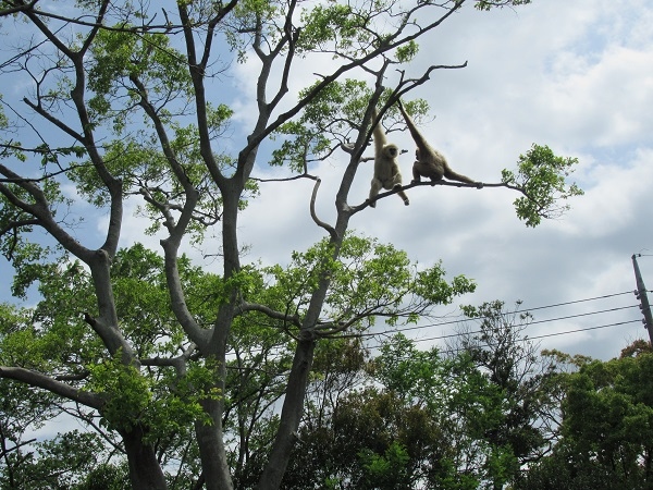 自然な環境の造りの飼育場で、大きな木があり、シロテテナガザルのブラキエーションも楽しい。