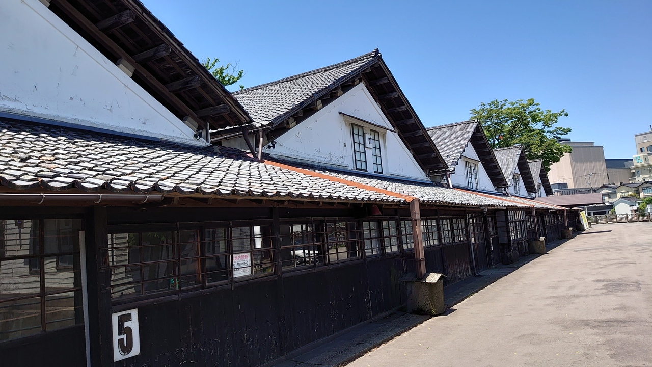 米を保存する倉庫が、観光物産館や資料館として、一部観光のためにも利用されています。建物の周りをぐるっと一周してみましたが、倉庫の裏手には風や日よけのために植えられたケヤキが並んでいて、さわやかな気分になりました。