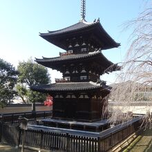 興福寺の奥のほうにあり、位置的にあまり目立たない場所にあるので、観光客もまばらです。五重塔ほどは壮大さはないですが、小ぶりながらもとても美しい建造物でひっそりとたたずむ姿がいいです。興福寺は建ものが多く存在していますが、この三重塔のように華やかなもの以外にも見ておきたいものがあるのでお勧めです。