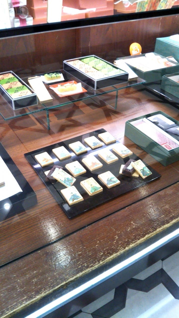 東京・東京駅直結の「大丸東京店」に出店している『叶 匠寿庵 大丸東京店』は、滋賀県に本店を構える和菓子舗で、「あも歌留多」という、百人一首を和菓子にした和菓子が販売されています。丹波大納言小豆を使った羊羹のような生地に、羽二重餅(求肥)を包んだ棹菓子となっていて、見た目が百人一首の歌留多そのもので初めて見た時 ちょっとびっくりしました。