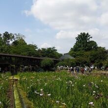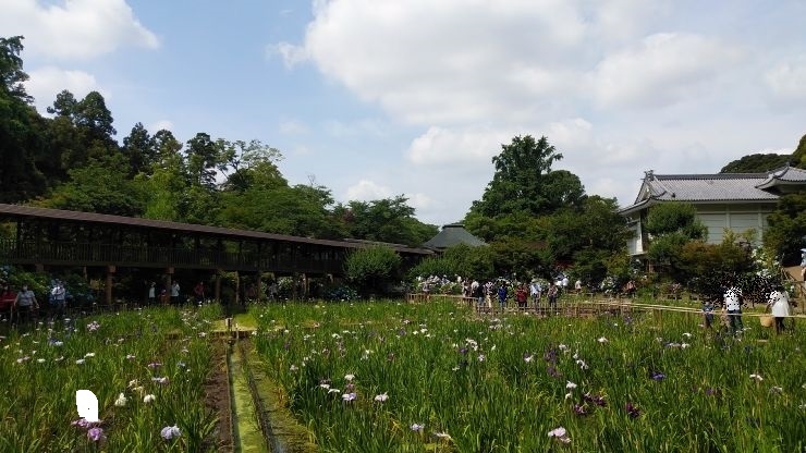アジサイとハナショウブが見ごろを迎える6月は9時から開門。開門直後は長蛇の列ができており、境内も混雑していた。