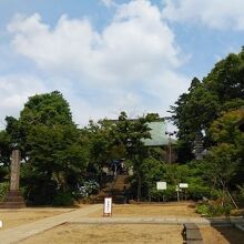 駅前から一本道の参道。交通量の割には歩道がない区間もあり、昔ながらの道が残っている印象。