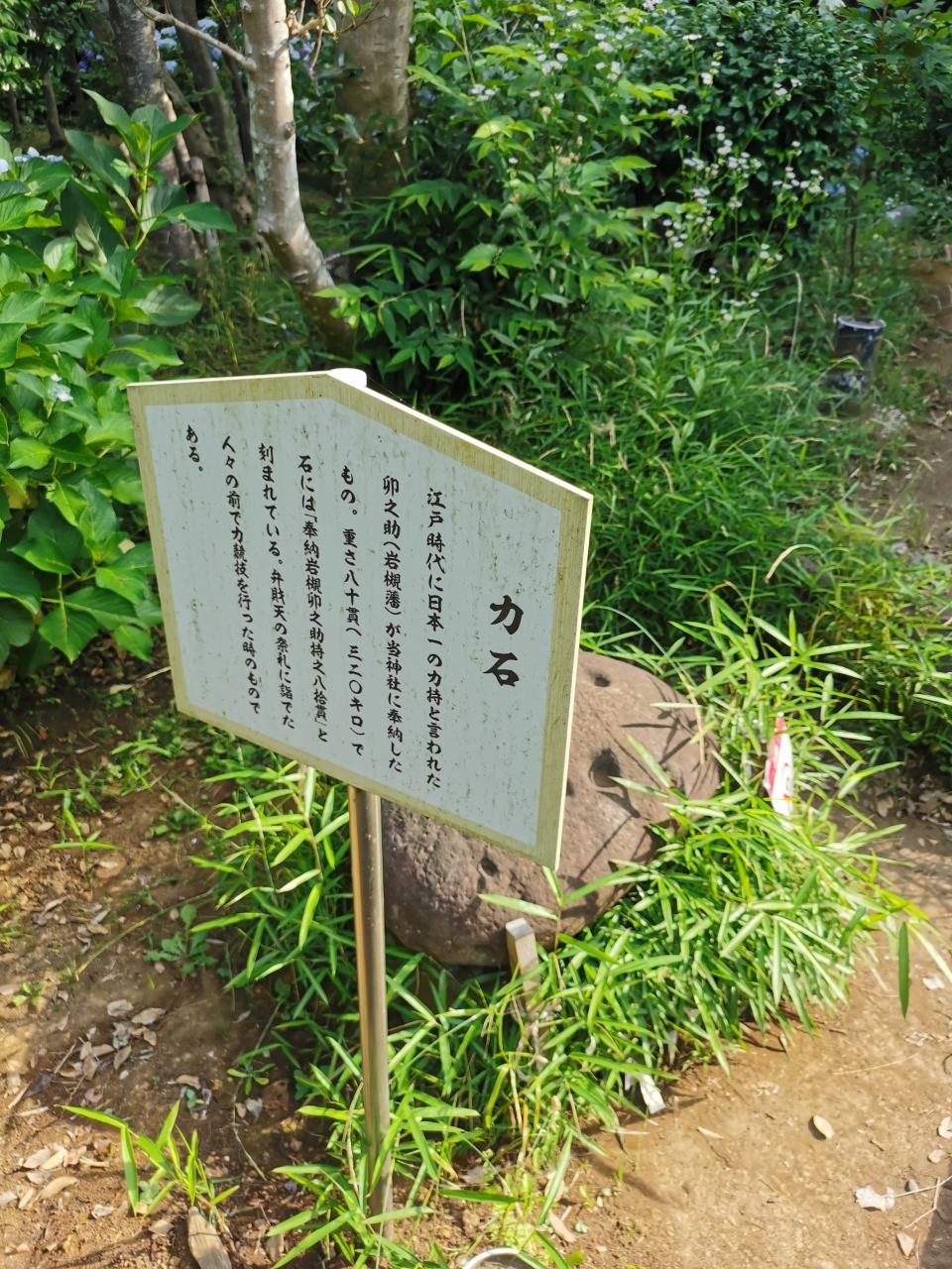 天気の良い日曜日の早朝に江ノ島一周散歩に行きました。有料駐車場に車を停めてから島内を散策です。楼門を抜けて辺津宮、中津宮をされてました。参拝した後、サムエルコッキング苑を通って奥津宮まで色々見ながら1時間弱。岩屋に降りる階段の手前に奥津宮があります。落ち着いた雰囲気で良い感じを受けました。力石は奥津宮の手前にひっそりとあります。亀石の手前ですね。こちらも見た目はただの石ですが、周りにはあじさいが咲いていて良い雰囲気の場所でした。